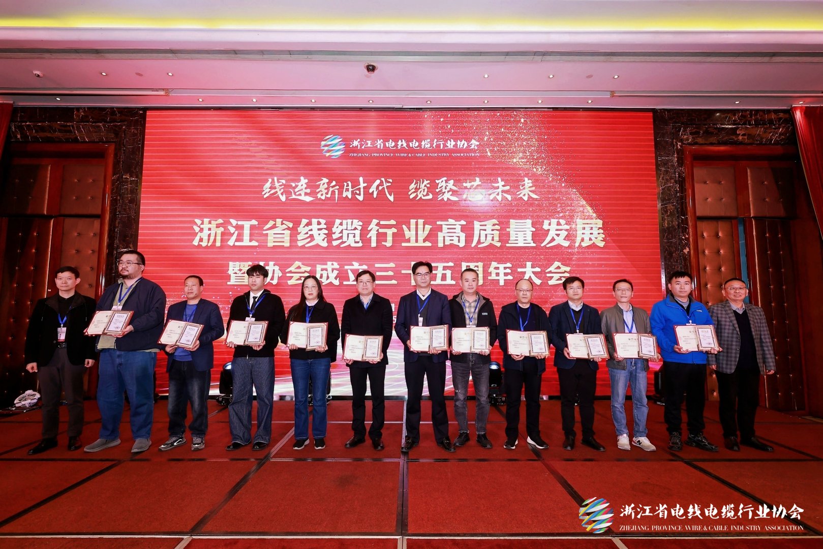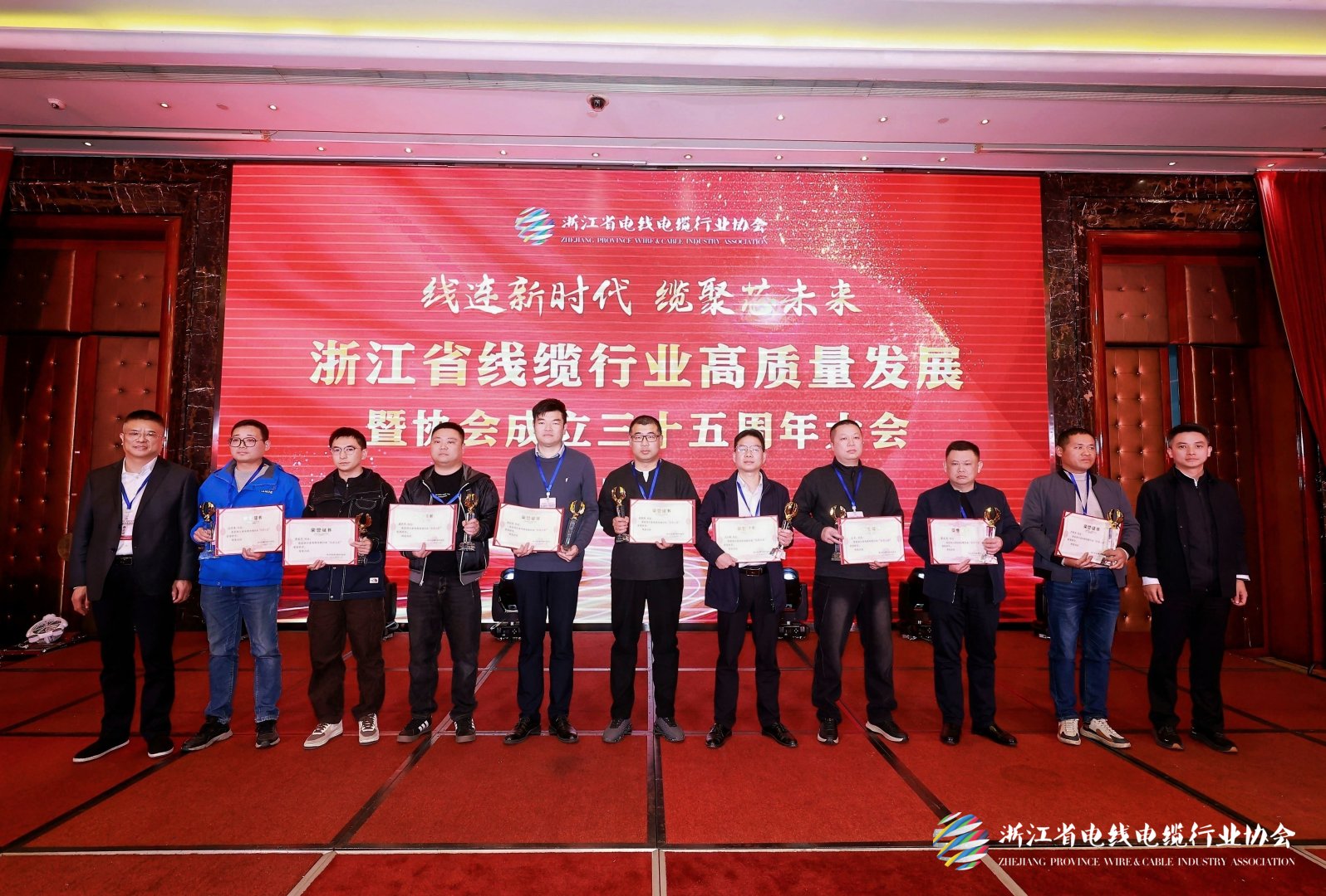 On November 28, at the conference marking the high-quality development of Zhejiang’s wire and cable industry and the 35th anniversary of the industry association, Xie Zhongzheng from our company was conferred the title of"Outstanding Science and Technology Professional", while Ren Yanfeng picked up the "Outstanding Craftsman" award.