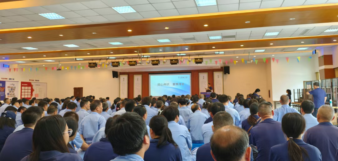 盛夏时节,骄阳似火,一如天杰人奋进的热情。7 月 14 日,天杰实业 2025 年半年度总结大会在公司多功能厅召开,全体员工齐聚一堂,共同总结上半年工作成果,规划下半年发展目标。会议以“精进不怠,进化致远”为主题,董事长陈晓霖的讲话凝聚了全员共识,明确了聚焦增长的战略方向。