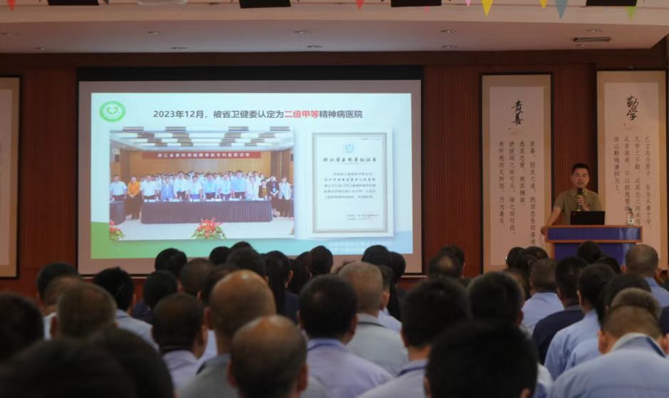 两项议程简洁高效,迅速过渡至本次大会的核心环节——压力管理专题讲座。公司特邀临安区第五人民医院心理科科长王建民主讲。他拥有二十余年精神临床与社区防治经验,是首届杭州市优秀医师,在压力情绪管理、睡眠障碍咨询等领域具备深厚造诣。