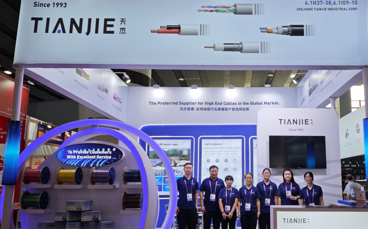实力产品引领关注,全球客商洽谈踊跃。天杰实业展出的控制线缆、安防线缆、综合布线用线缆等系列产品,凭借领先技术与过硬品质,受到众多国际采购商青睐。来自欧洲,亚洲、南美、非洲等地区的客商纷纷驻足,深入交流产品性能与技术方案。一位来自欧洲的采购商表示:“天杰的产品完全符合我们对高品质线缆的期待,希望未来能建立长期合作关系。”